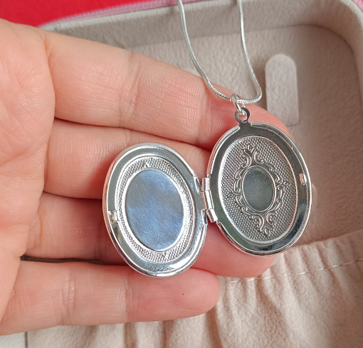 Collar plata Relicario Ovalado. Plata 925. Preciosa pieza de joyería. Un delicado collar con un relicario Ovalado.